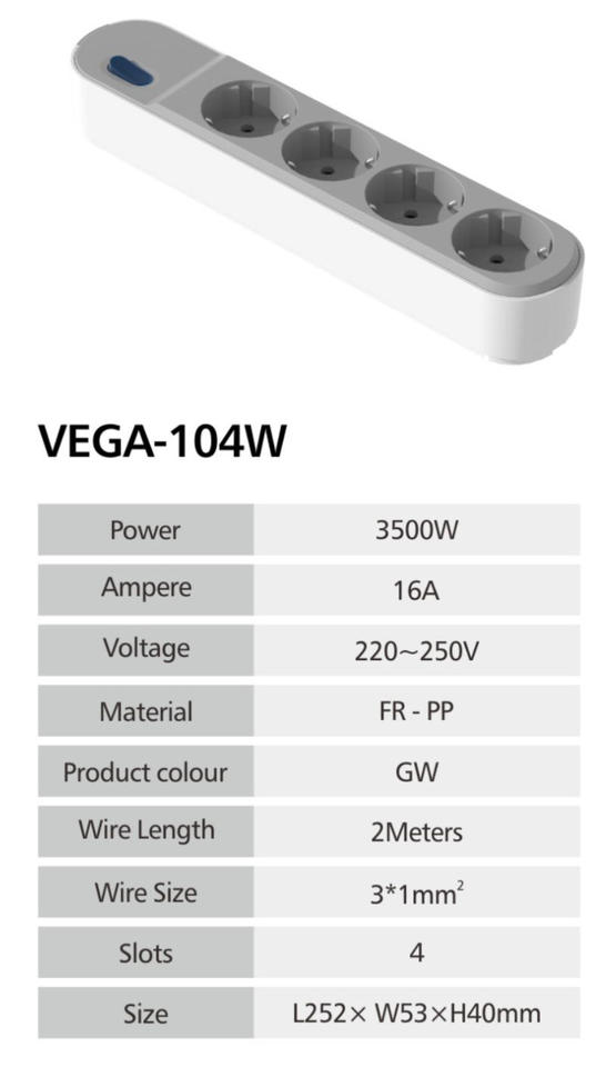 Hot Customized 16A VEGA Series EU Tabletop Socket Industrial Office Use PP Fire-Resistant Copper Cord
