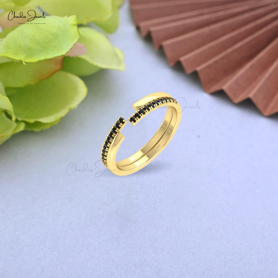 แหวนทองคำแท้ 14K แบบเปิดสำหรับผู้หญิง ประดับเพชรดำ 0.33 กะรัต แหวนหมั้นเพชรแบบฝังเพชรเต็มวง ราคาโรงงาน