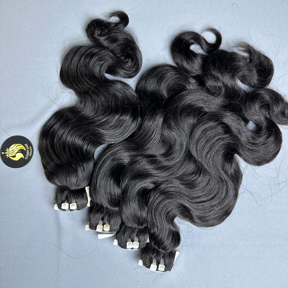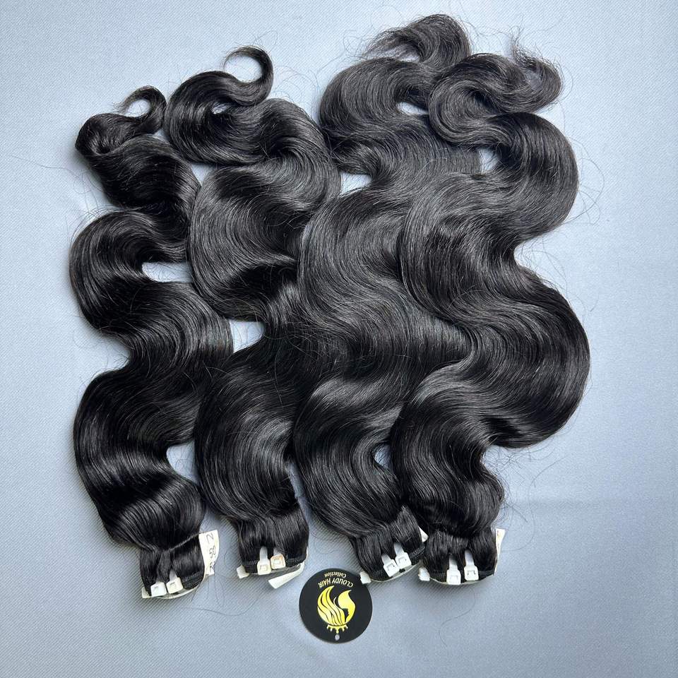 ข้อเสนอสุดคุ้ม ผมเวียดนามคุณภาพสูง เกรดเวอร์จิ้น เนื้อผมนุ่มลื่น สีดำธรรมชาติ แบบลอนบอดี้เวฟ เย็บสองชั้น ขนาด 8-40 นิ้ว ต่อผมทุกขนาด