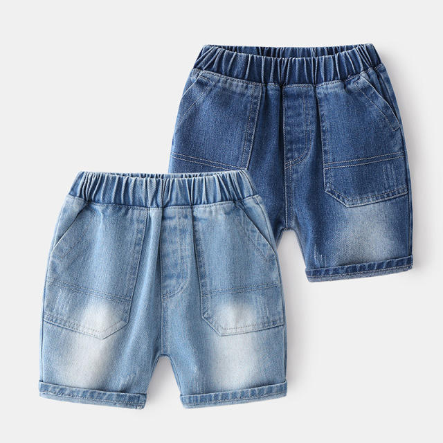 กางเกงยีนส์ขาสั้นเด็กชายสีน้ำเงิน ดีไซน์สำหรับฤดูร้อน ผลิตในจีน