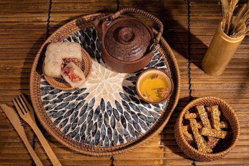 ถาดเสิร์ฟงานฝีมือเวียดนามคุณภาพสูง ดีไซน์ทันสมัย ทำจากหวายเซรามิกธรรมชาติ 100% ขนาดสั่งทำได้ ใช้ได้หลากหลาย เป็นมิตรกับสิ่งแวดล้อม