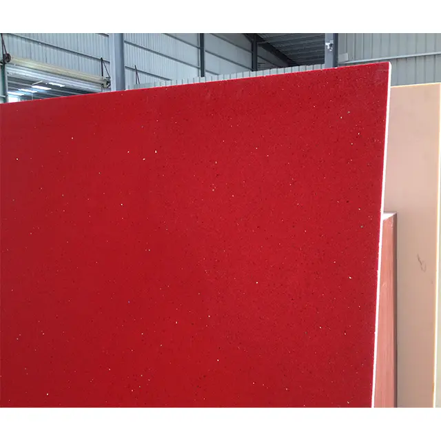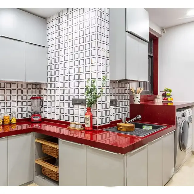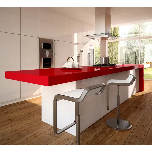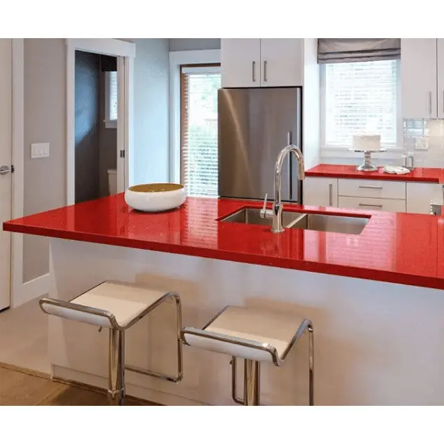 แผ่นควอตซ์คริสตัลสีแดงคุณภาพพรีเมียม สไตล์โมเดิร์น ขนาดใหญ่ ทนความร้อน กันน้ำ รับประกัน 5+ ปี สำหรับเคาน์เตอร์ครัว