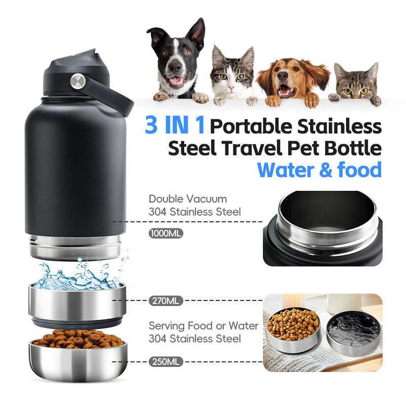 ขวดน้ำสุญญากาศ32ออนซ์พร้อมชามอาหารสัตว์สุญญากาศทำจากสเตนเลสผนังสองชั้นสำหรับเดินทางขนาดใหญ่ออกแบบได้ตามที่ต้องการ