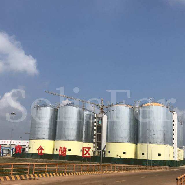 ไซโลเหล็กชุบสังกะสีก้นแบนแบบจุ่มร้อน1000T ความจุใหม่สำหรับการจัดเก็บธัญพืชสำหรับการก่อสร้างในฟาร์ม