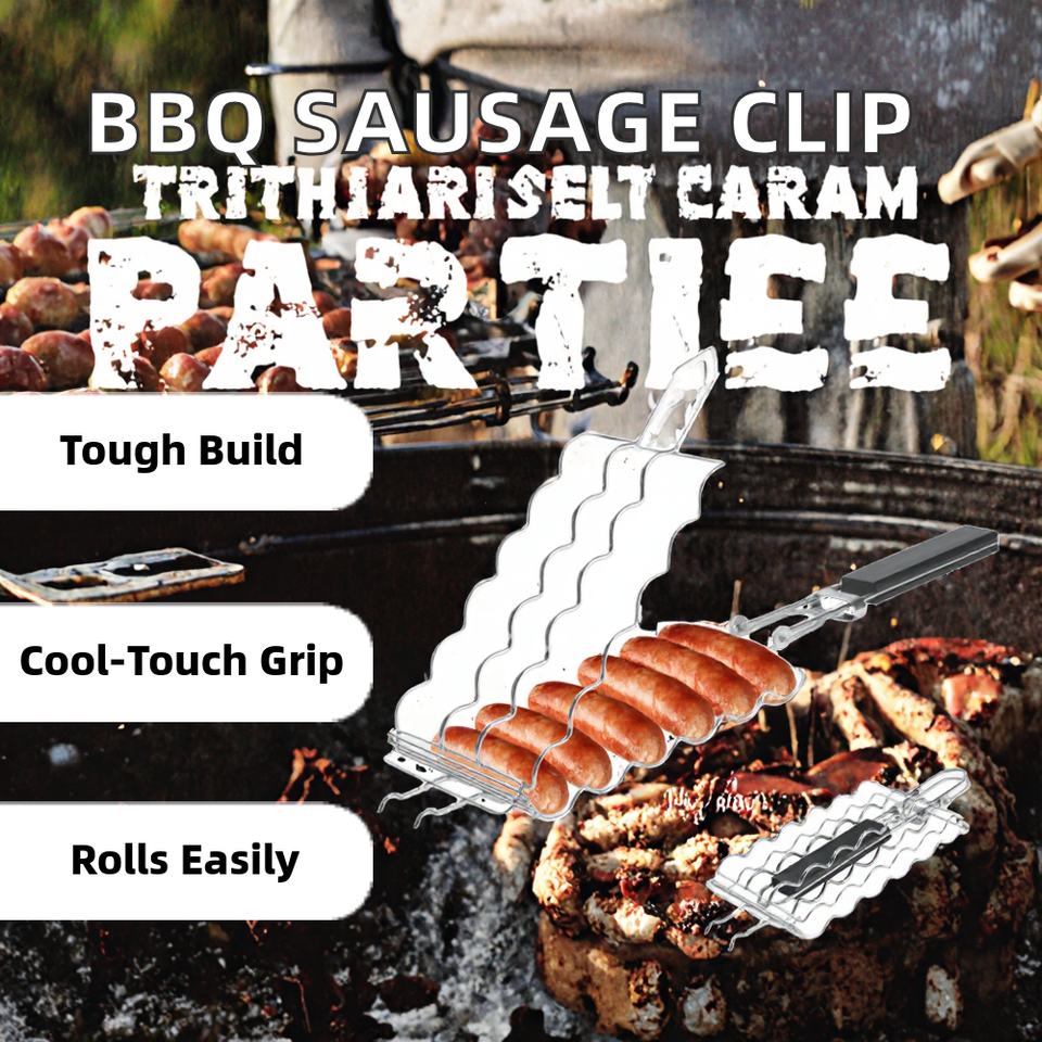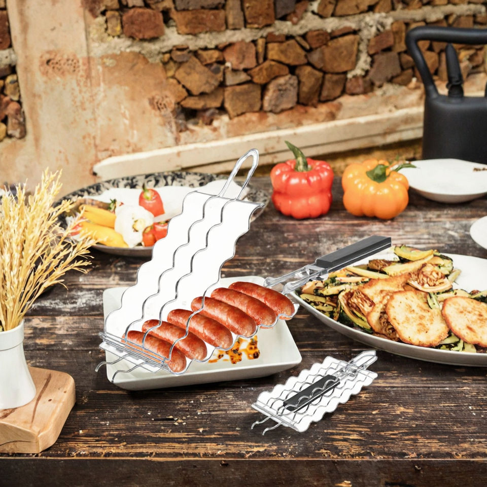 ตะแกรงย่างฮอทดอกแบบหนีบพร้อมแปรง ยาว 6 ไส้กรอก สแตนเลส ทนความร้อน ถอดออกได้ เป็นมิตรกับสิ่งแวดล้อม ไร้ควัน