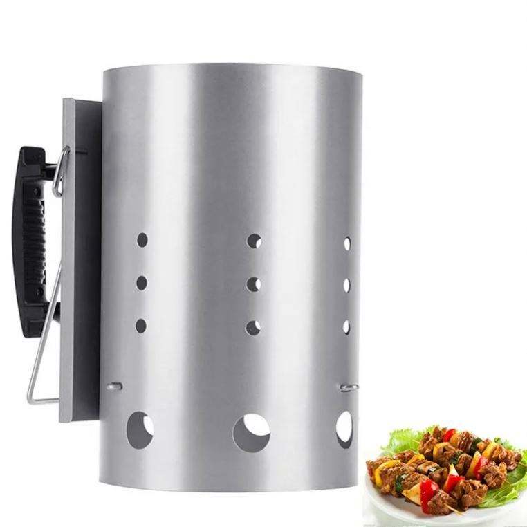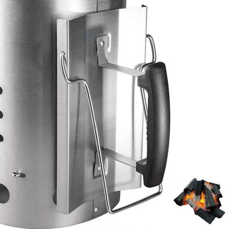 เตาบาร์บีคิวแบบถังเหล็กกล้าไร้สนิมสีเงิน รุ่นดีลักซ์ ทนทาน เป็นมิตรกับสิ่งแวดล้อม พร้อมชุดจุดไฟแบบปล่องควันเร็ว