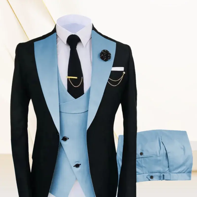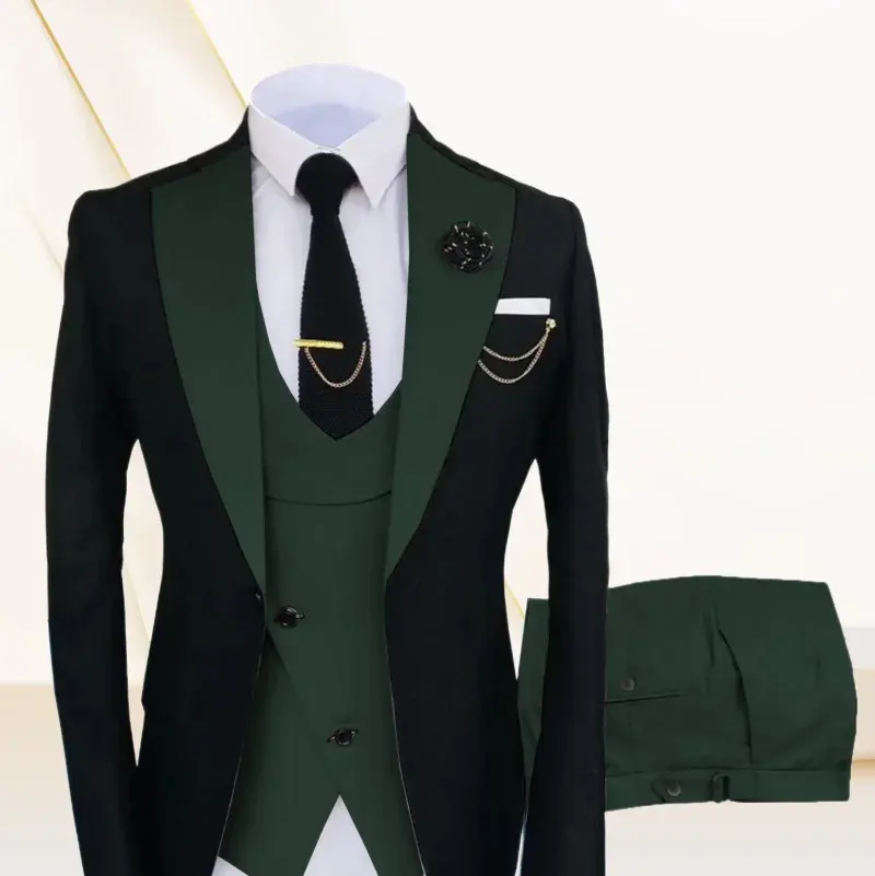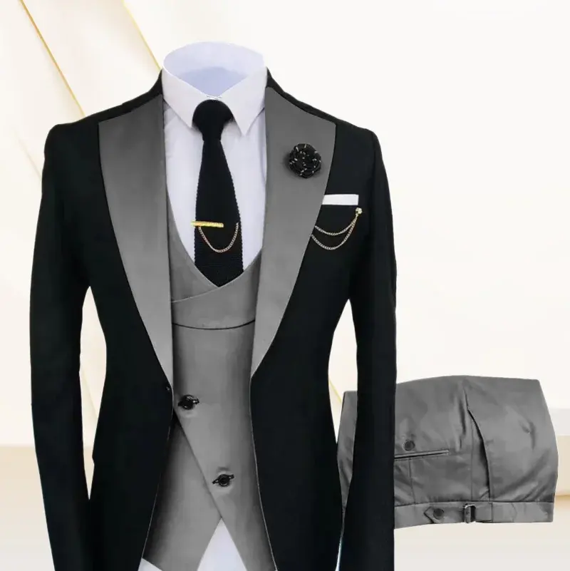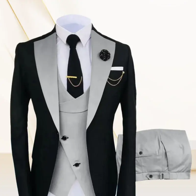 ชุดสูทผู้ชายทรงเข้ารูป 3 ชิ้น ผ้าโพลีเอสเตอร์ สำหรับงานแต่งงาน ปกแหลม งานพรอม ชุดทีโร่ แมตช์ลิฟ แฟชั่นทันสมัย