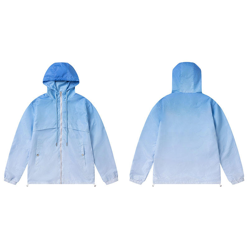 เสื้อแจ็คเก็ตกันลมแบบมีฮู้ดลายพรางแฟชั่นสุดฮิต โลโก้สั่งทำได้ ด้านหน้า 100% ไนลอน กันน้ำ แบบซิป