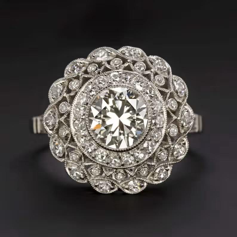 แหวนหมั้นเพชรแล็บโกรว์สไตล์อาร์ตเดโคสุดฮิต ดีไซน์วินเทจทรงฮาโล ทองคำแท้ 14K ทรงกลม สำหรับเจ้าสาว