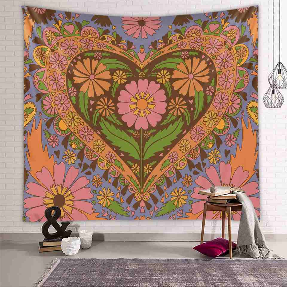 พื้นหลังผ้าสไตล์ผ้าของตกแต่งห้องพรมดอกไม้ผ้าแบบแขวน