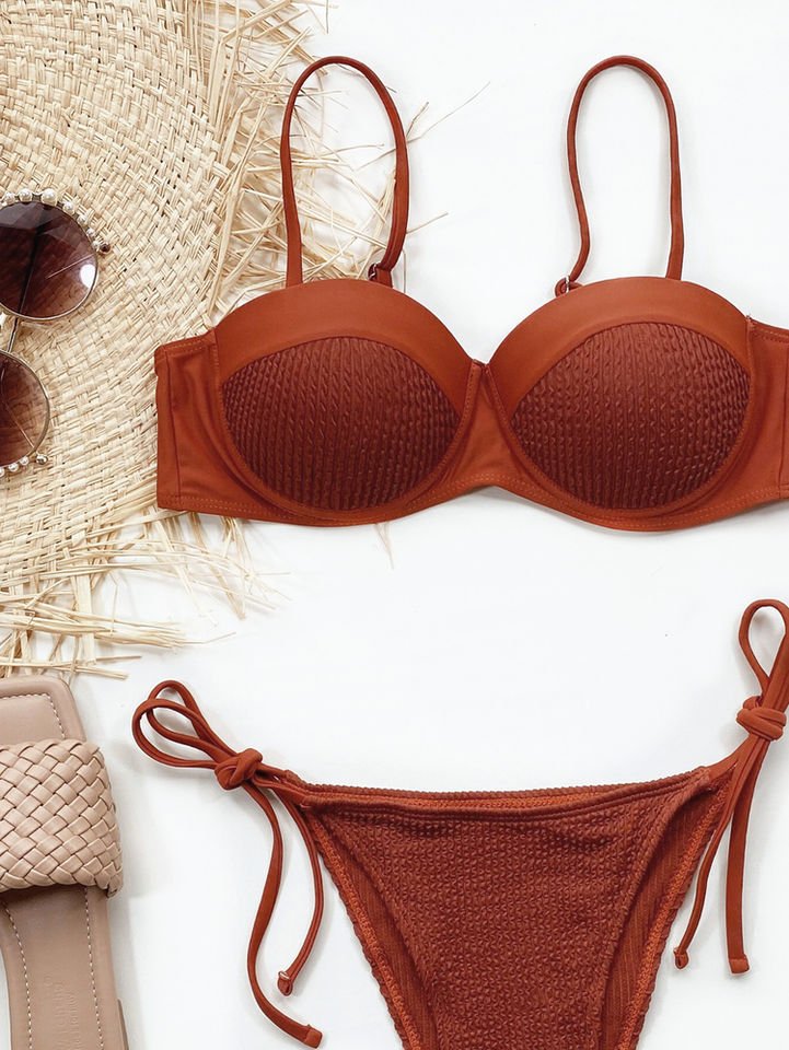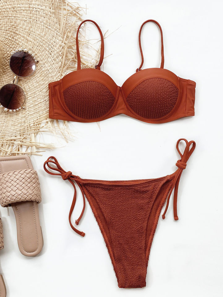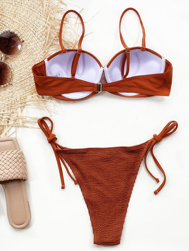ชุดว่ายน้ำเซ็กซี่สองชิ้นแบบดันทรงสำหรับผู้หญิงชุดว่ายน้ำเซ็กซี่สีทึบชุดว่ายน้ำเซ็กซี่บิกินี่