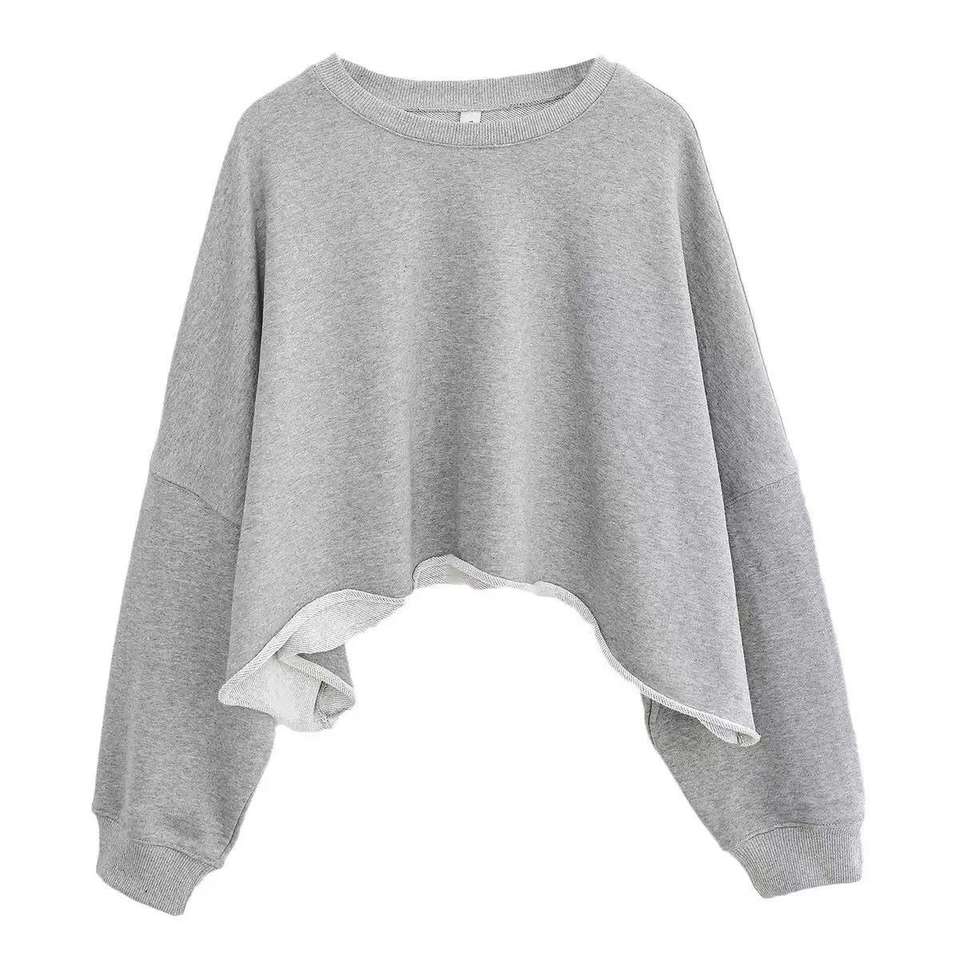 เสื้อมีฮู้ดผ้าหนาสำหรับสาวออฟรนซ์เทอร์รี่สำหรับผู้หญิงสไตล์อเมริกาเสื้อลำลองสั้นยาวสั้นมีชายเสื้อให้ความอบอุ่นสำหรับฤดูหนาวฤดูใบไม้ร่วง