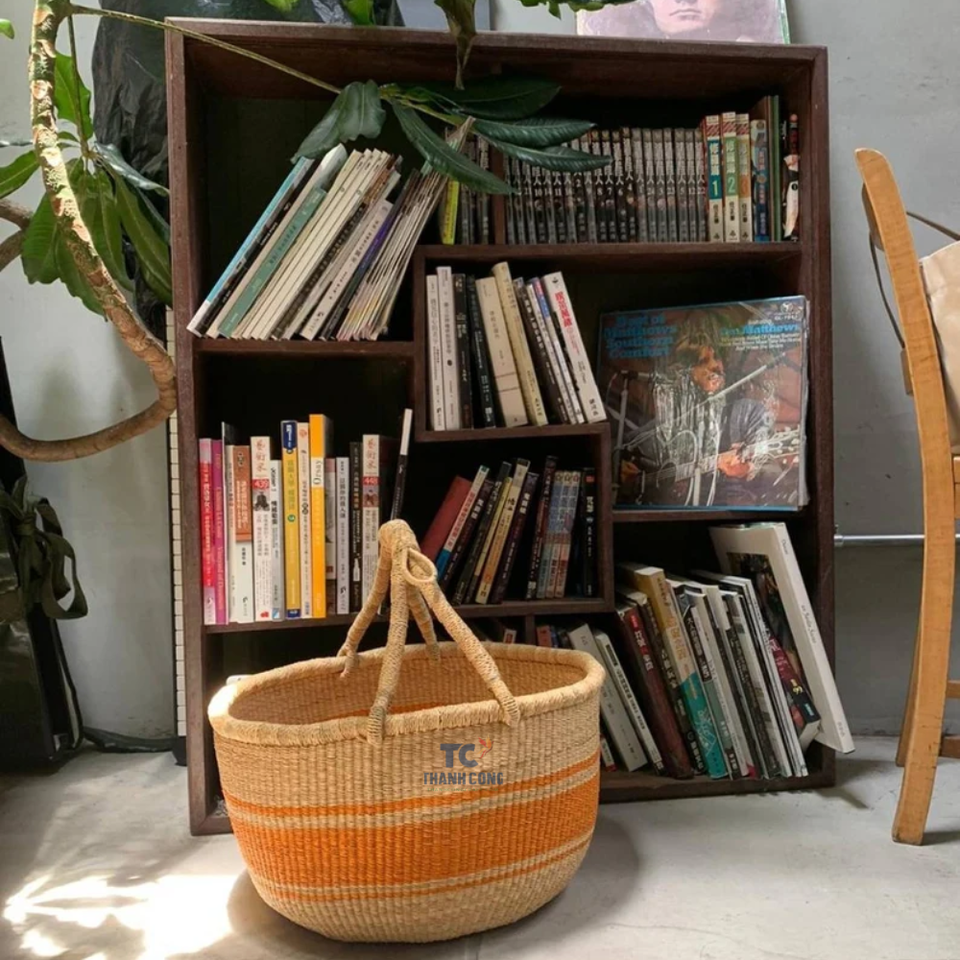 ตะกร้าสานจากหญ้าทะเลจากหญ้าทะเลจากธรรมชาติ Volga ตะกร้าเก็บของตกแต่งบ้าน