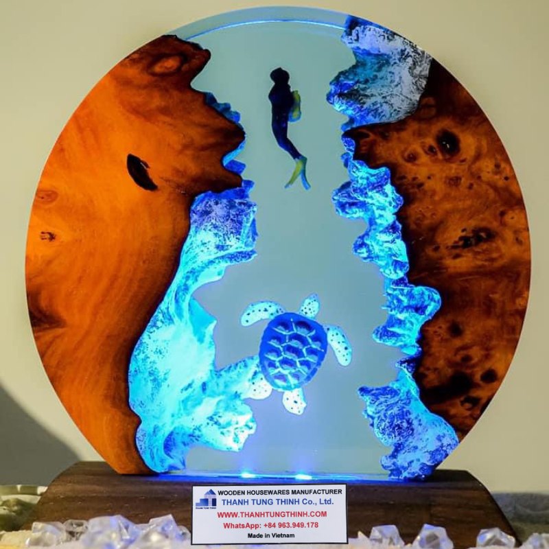 สินค้าขายดี-ไฟกลางคืนใต้ทะเลคุณภาพสูง ทำจากไม้และอีพ็อกซี่เรซิ่น เป็นมิตรกับสิ่งแวดล้อม ปรับแต่งได้ตามธีมงานศิลปะ ผลิตในเวียดนาม ขายส่ง