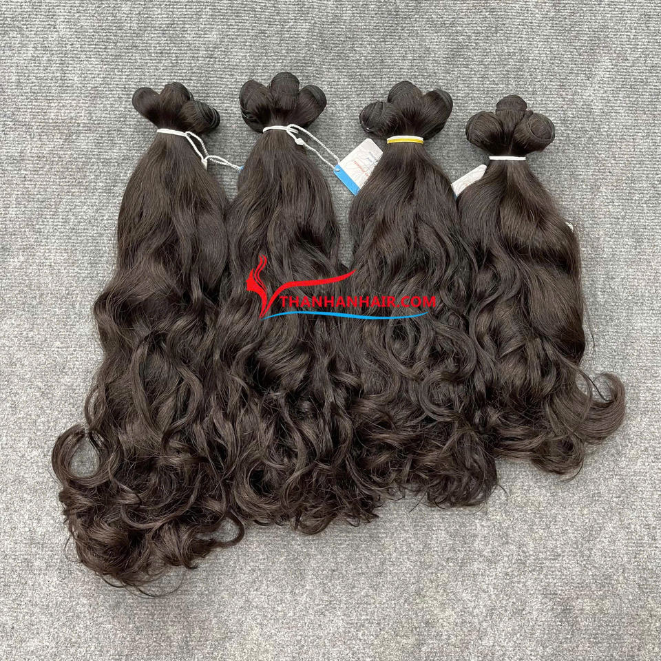 สินค้าขายดี ผมแท้เวียดนาม 100% สีดำธรรมชาติ ลอนธรรมชาติ แบบเย็บติดด้วยเครื่องจักร ถักสองชั้น พร้อมส่ง ราคาขายส่ง