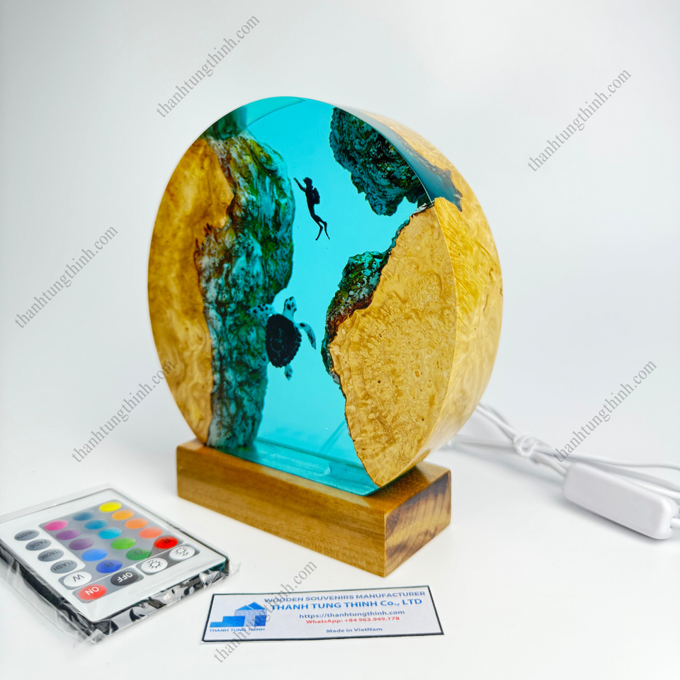 ของตกแต่ง2025โคมไฟกลางคืนทำจากไม้อีพ็อกซี่งานศิลปะสุดสร้างสรรค์โคมไฟตั้งโต๊ะของขวัญจากเวียดนามสำหรับขายส่ง