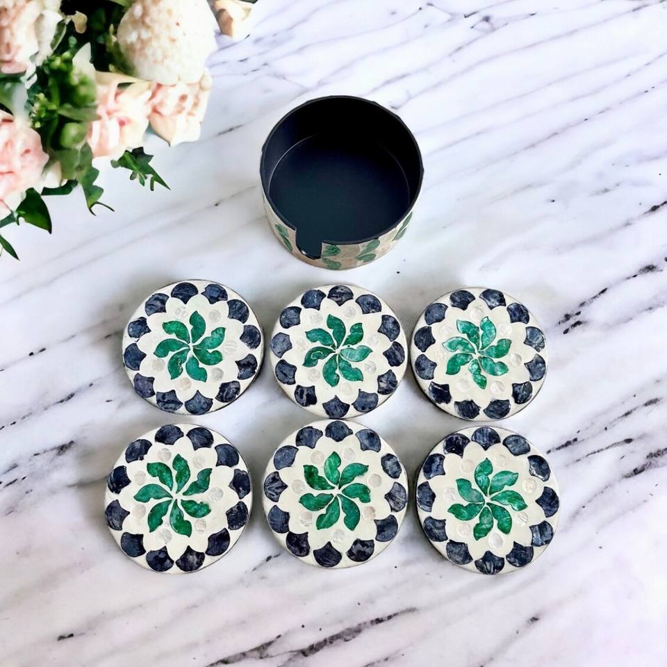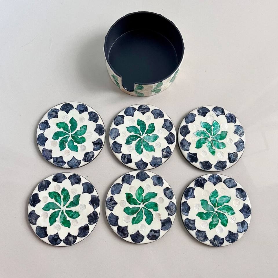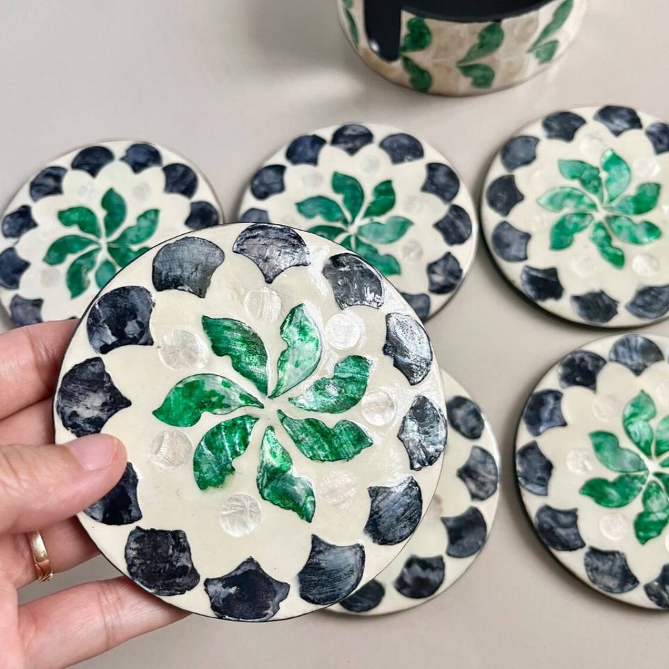 Hot Items Mother of Pearl Coasters with Holder Seashell Inlay Round Coaster Set Cup Holders for Tableware Made in Vietnam