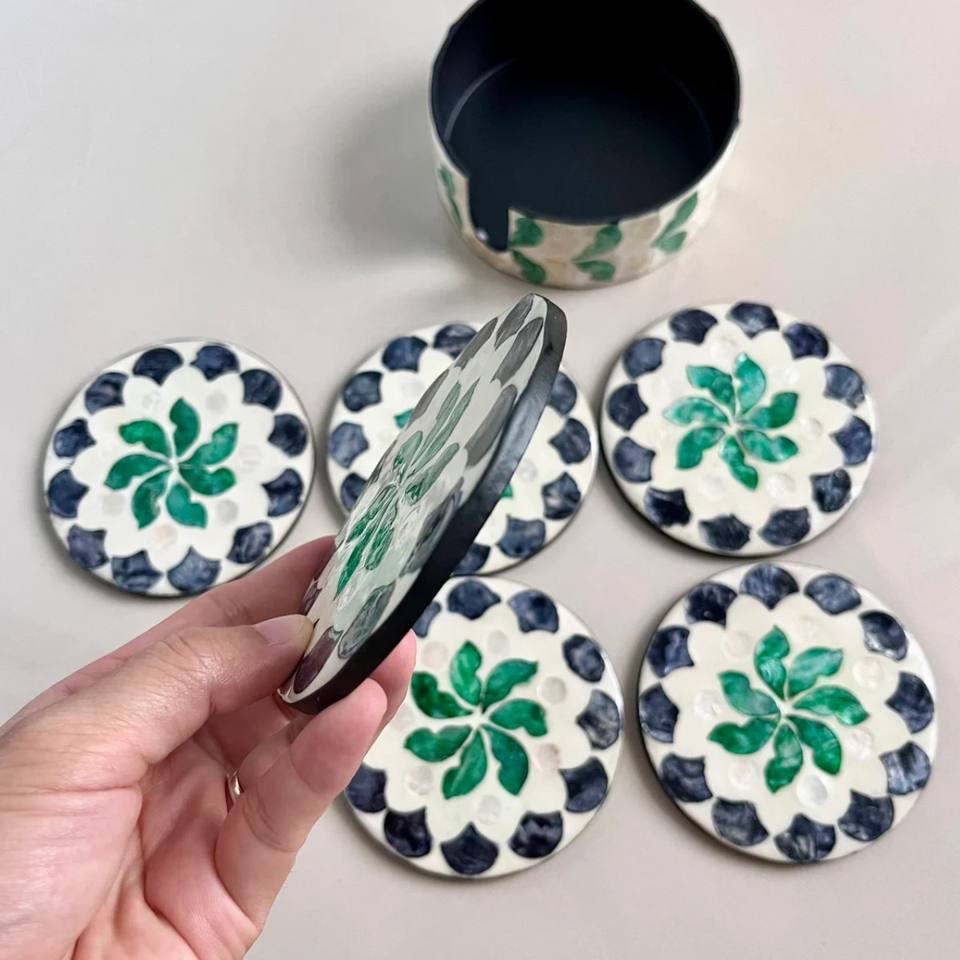 Square Mother of Pearl Coasters with Holder for Tableware