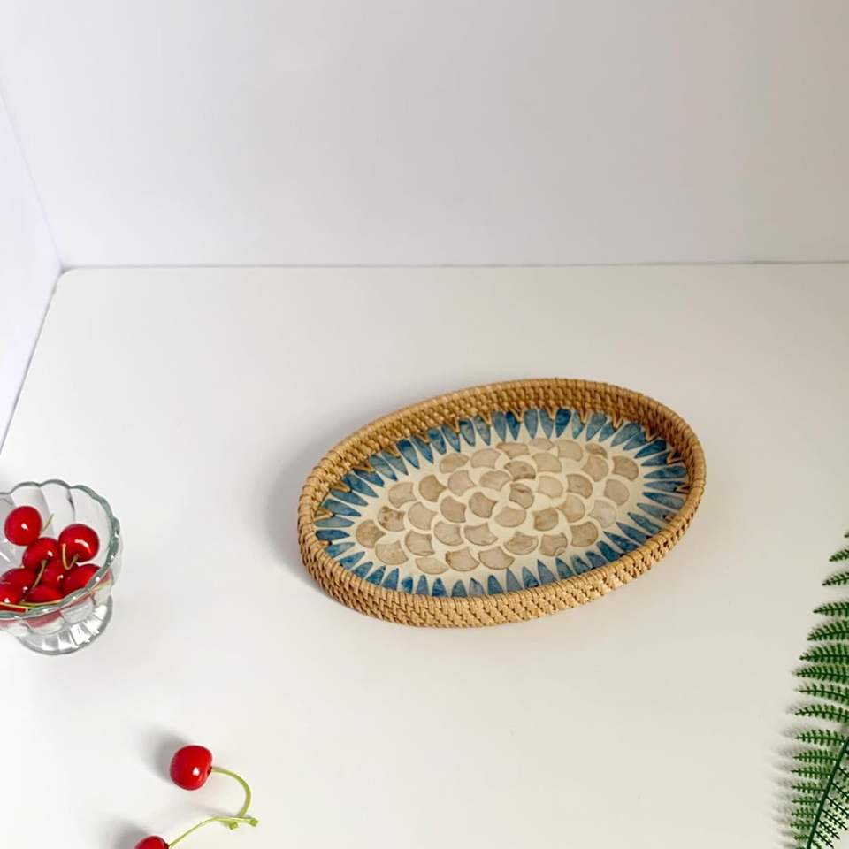 ชุดถาดเสิร์ฟทรงรีแบบฝังหวาย3ขนาดสำหรับโต๊ะกาแฟและเครื่องครัวขายส่งคุณภาพสูงจากเวียดนาม