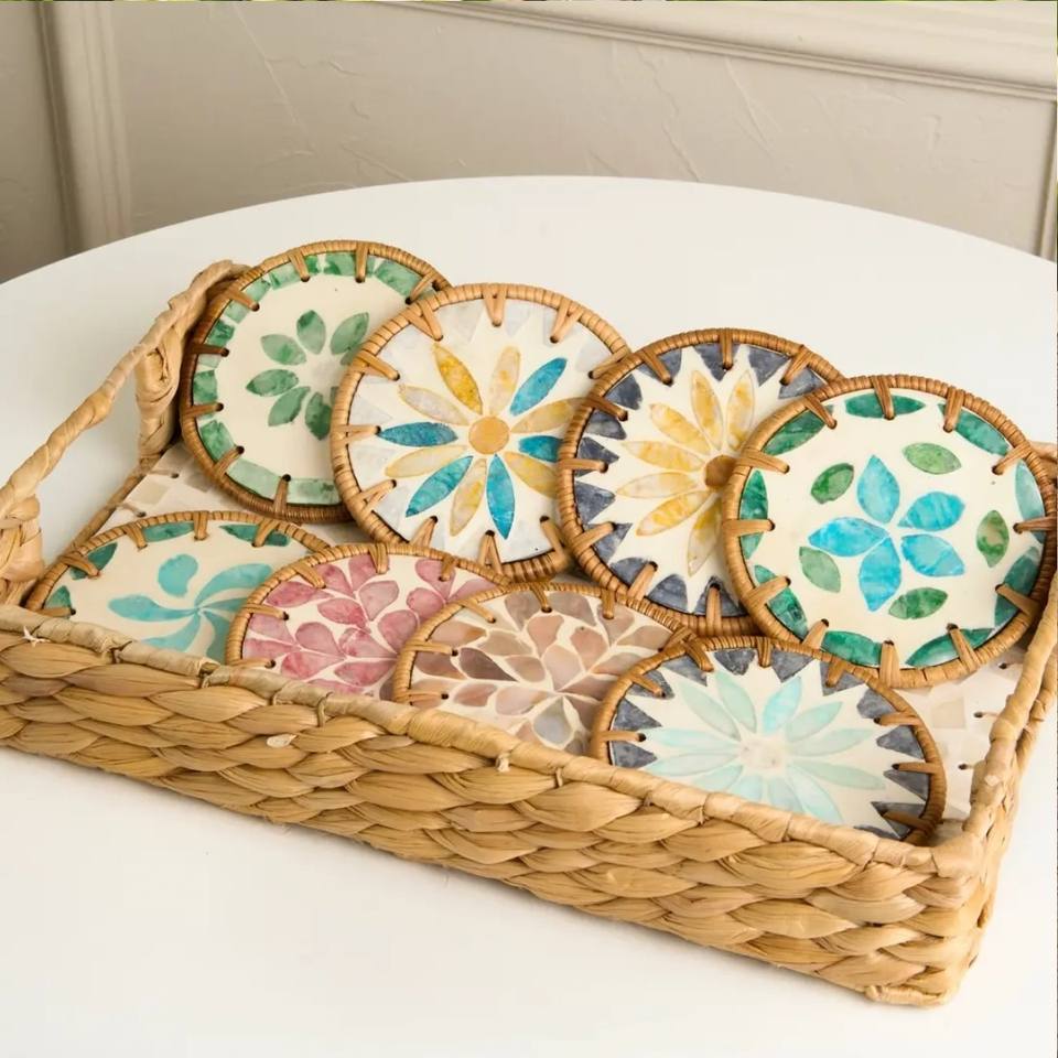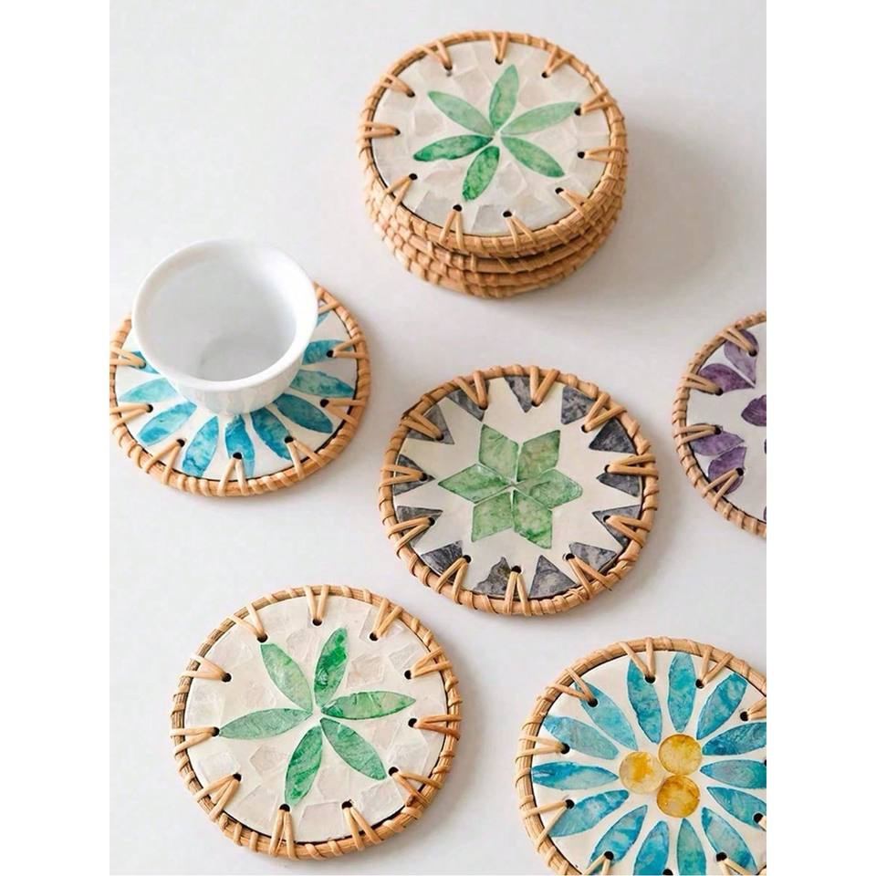 Mother of Pearl Coasters with Rattan made in Vietnam