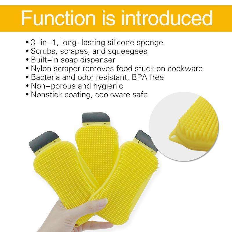 Hot Kitchen Cleaning Tool Sponge Brush Silicone Dish Bowl Cleaning Brush Washing Pan Dish Bowl Sponge Scraper With Soap