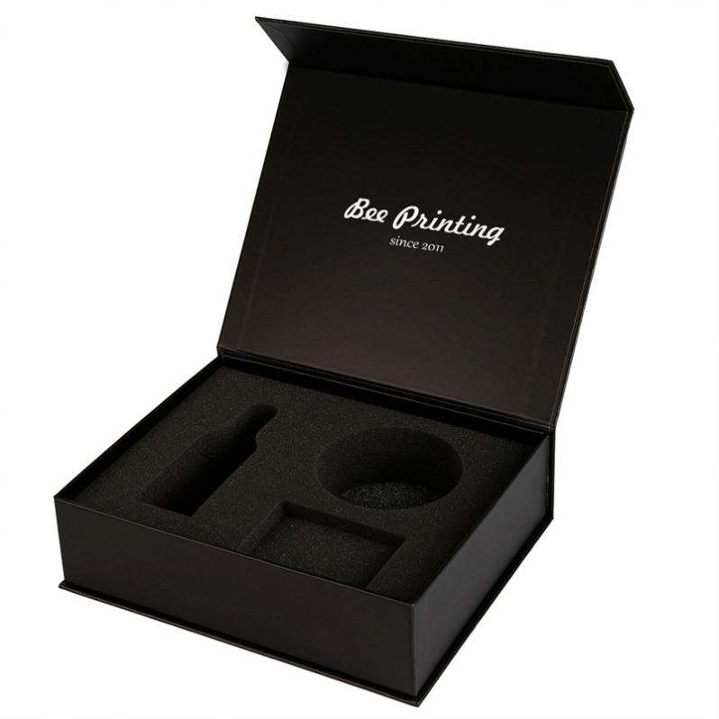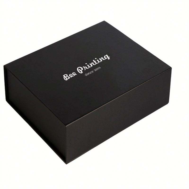 กล่องของขวัญขนาดใหญ่สีดำพิมพ์โลโก้ตามสั่ง กล่องกระดาษแข็งแข็งแรง ปิดด้วยแม่เหล็ก บรรจุภัณฑ์หรูหราสำหรับเสื้อผ้า
