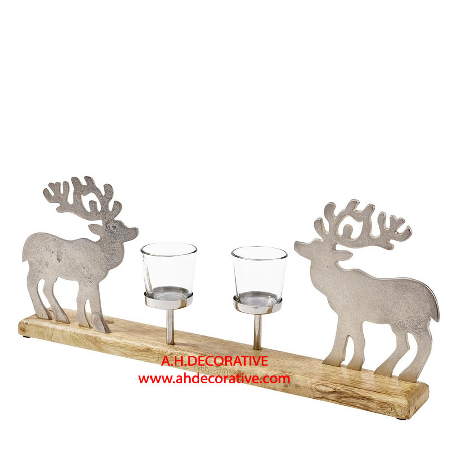 ฐานวางเขากวางอลูมิเนียมสีเงินแบบโบราณพร้อมเชิงเทียนแก้วรูปตัวที