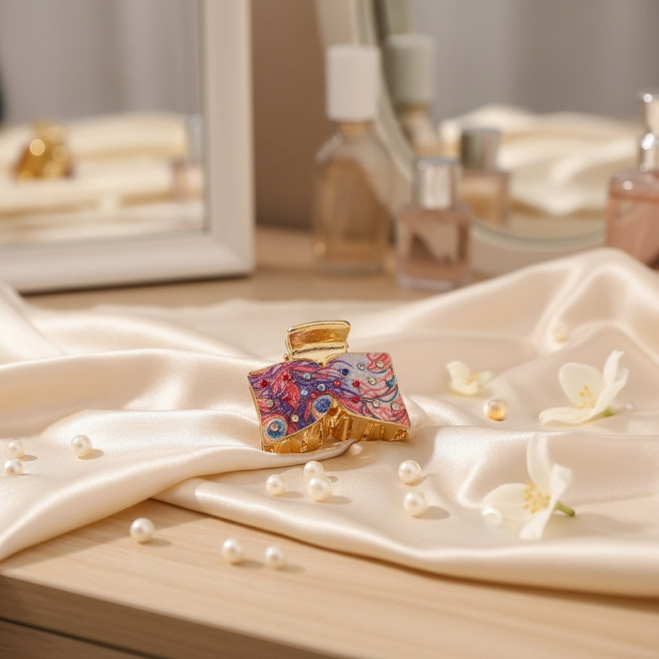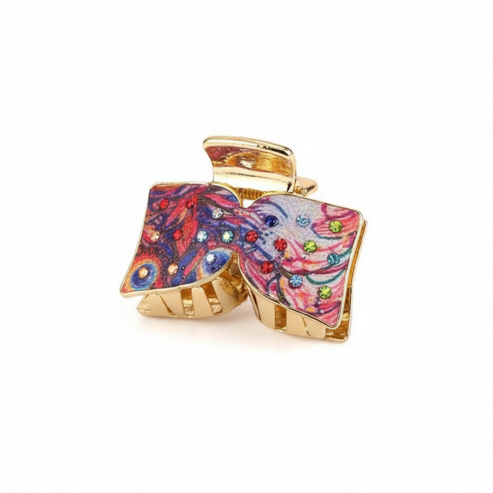กิ๊บติดผมผูกโบว์6สี4ซม. เพชรคละสี