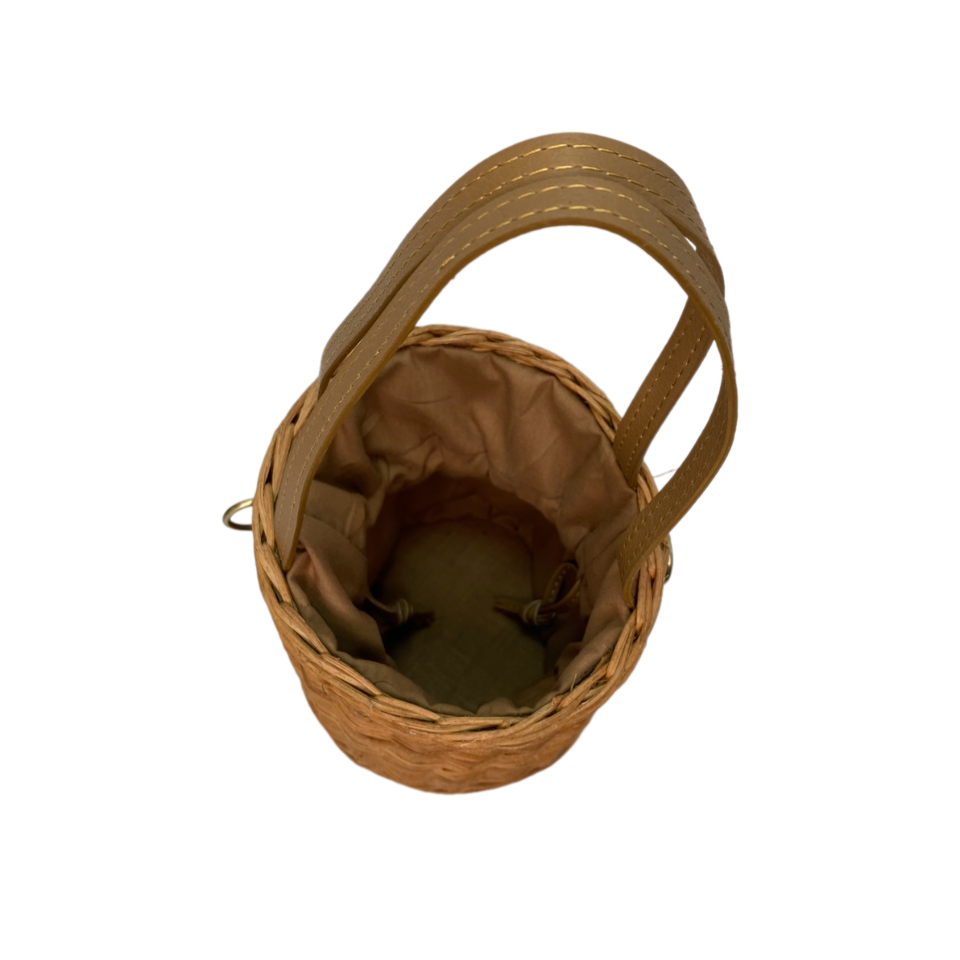 รุ่นใหม่รายการใหม่ตะกร้าหวายธรรมชาติทรงกระบอกพร้อมซับผ้าฝ้ายสีน้ําตาลและที่จับหนังสําหรับปิกนิกตั้งแคมป์เวียดนาม