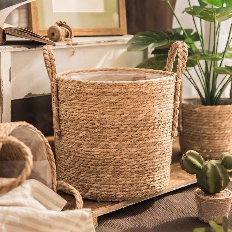 ตะกร้าเก็บน้ำผักตบชวาแบบแฮนด์เมด Nhat Minh อุปกรณ์สำหรับงานซักรีดและงานแฮนด์เมด