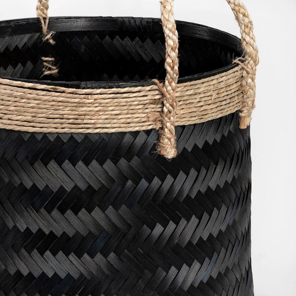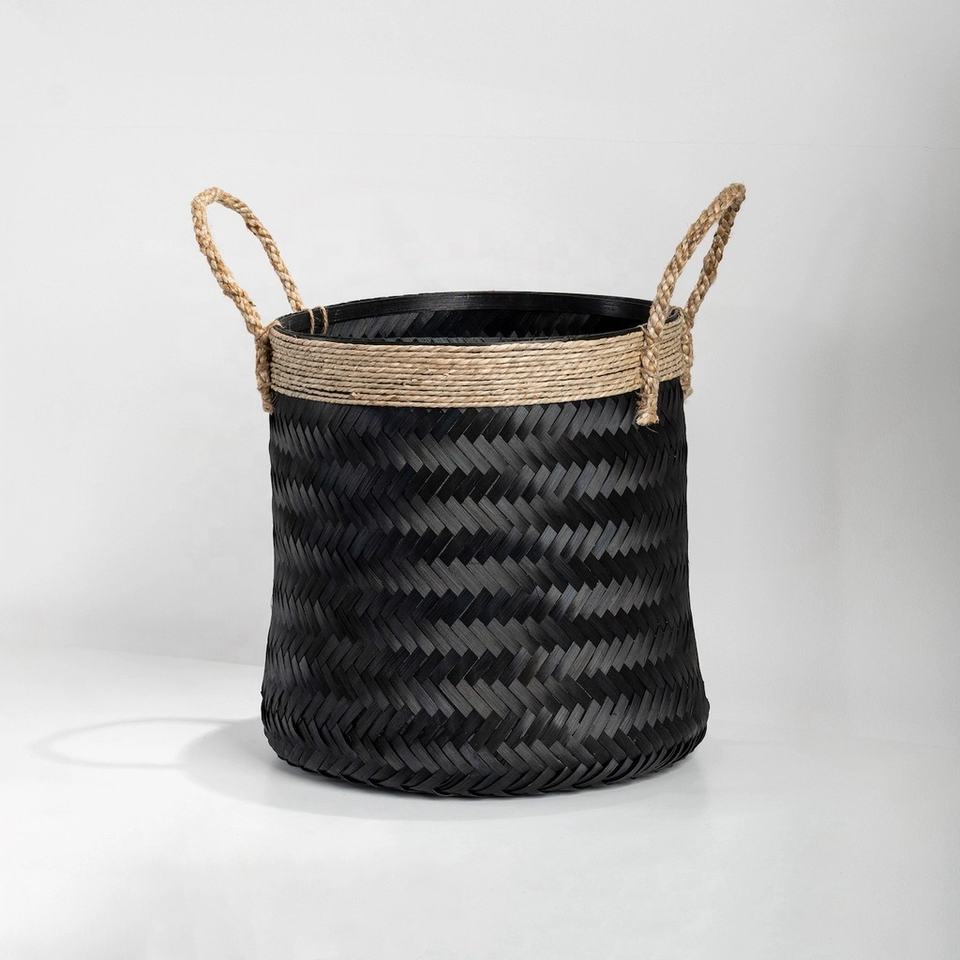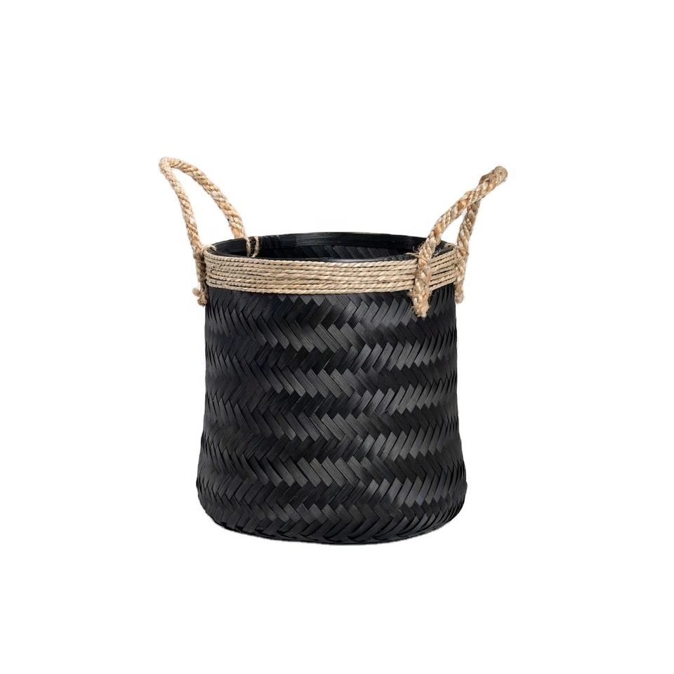ตะกร้าไม้ไผ่สานมือพร้อมด้ามจับกล่องงานซักรีดงานครัวทำมือตะกร้าใส่ของ