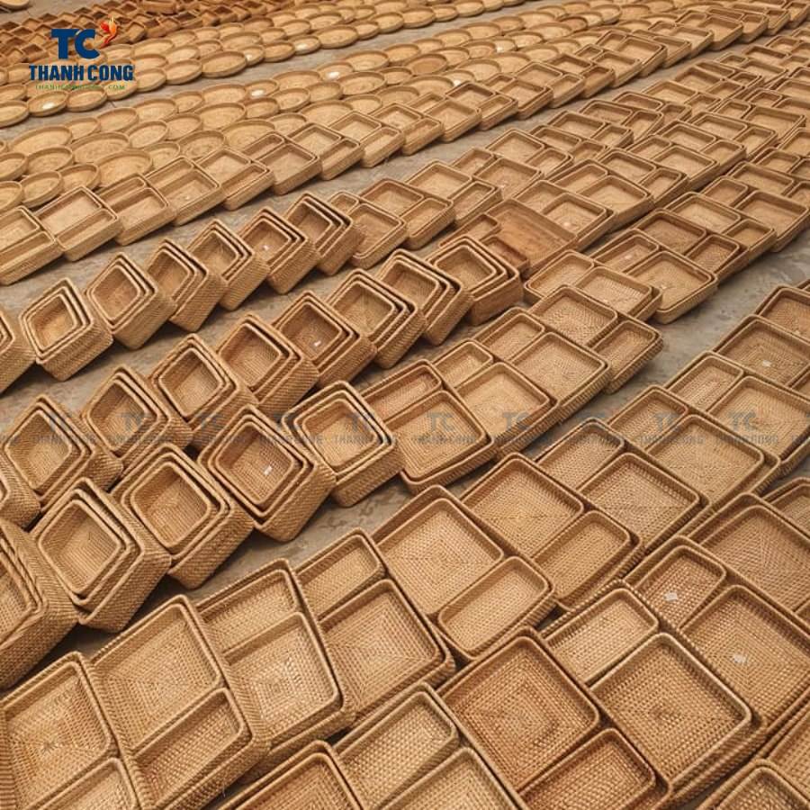ถาดไม้ไผ่ทรงกลมพร้อมด้ามจับถาดเสิร์ฟสำหรับตกแต่งถาดเสิร์ฟทำจากหวายงานแฮนด์เมดสำหรับ2024