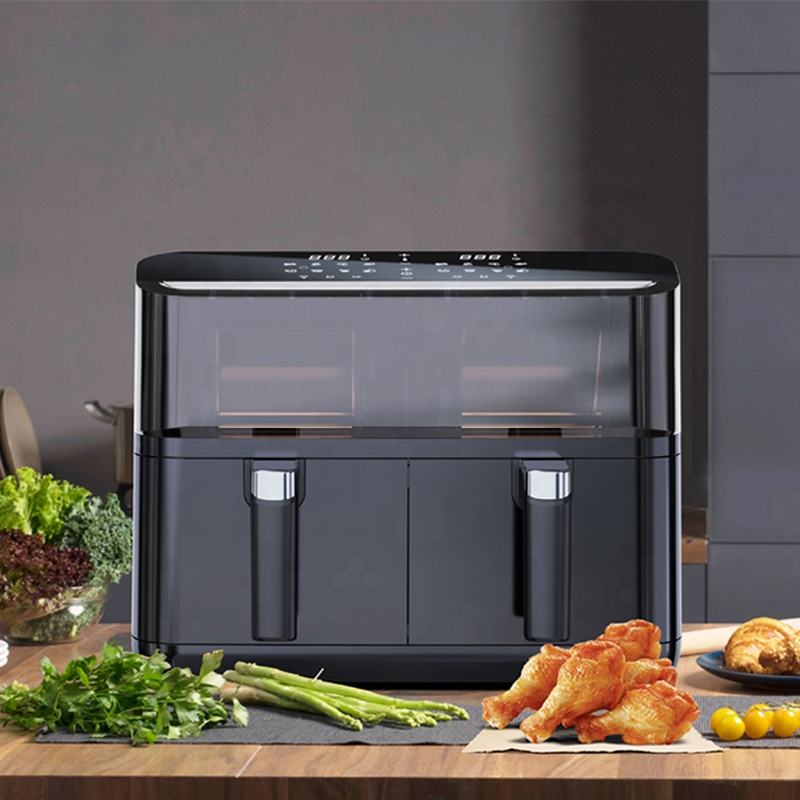 หม้อทอดไร้น้ำมันลมอเนกประสงค์สองชั้นสำหรับทำอาหารอัจฉริยะปรับแต่งได้