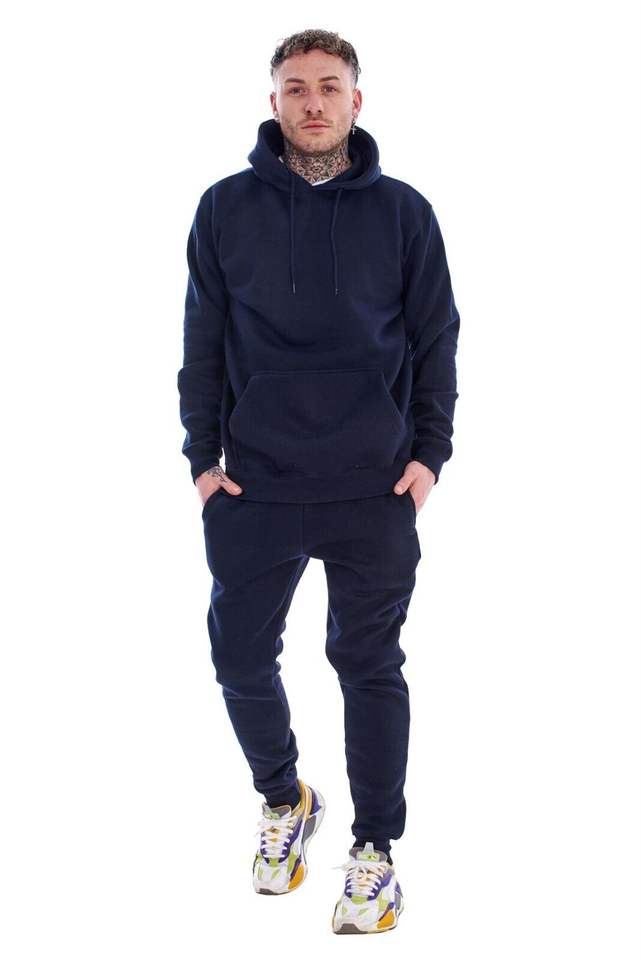 Hot New December Sale Men's Solid Heavyweight Hip Hop Blank Tracksuit OEM Customized Pullover Welted Pockets Hoodie Sweatpants