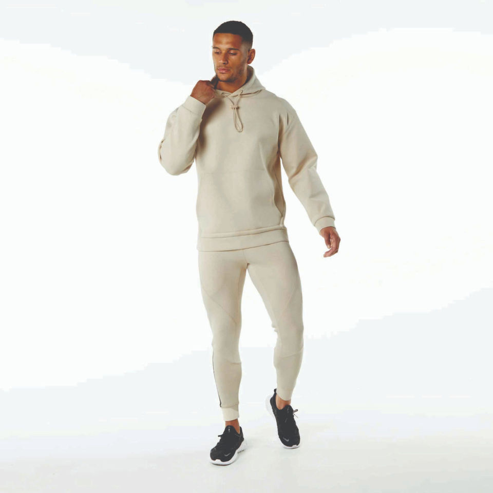 ชุดเซ็ตฮู้ดดี้และกางเกงขายาวสีพื้นแบบวินเทจทรงโอเวอร์ไซส์สำหรับผู้ชาย ดีไซน์ใหม่สุดฮิต บริการ OEM ผ้าครีมย้อมสีแบบแอซิดวอช
