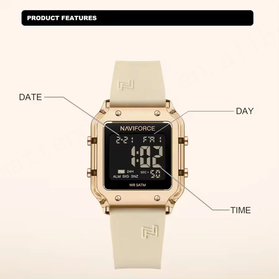 Hot New NAVIFORCE NF6105 Watches for Women Digital Fashion Casual Waterproof Silicone Strap Female Sport Wristwatches 2025