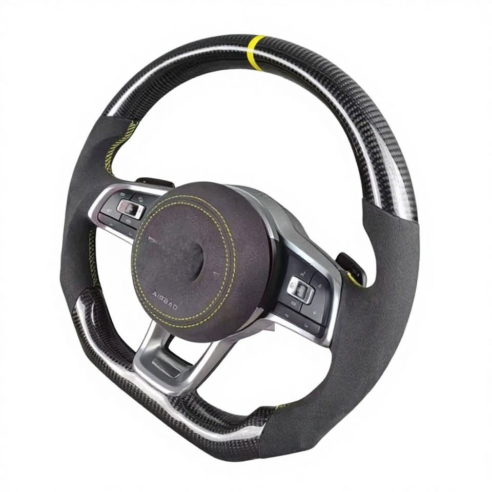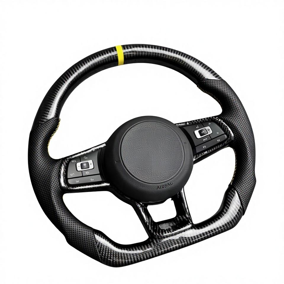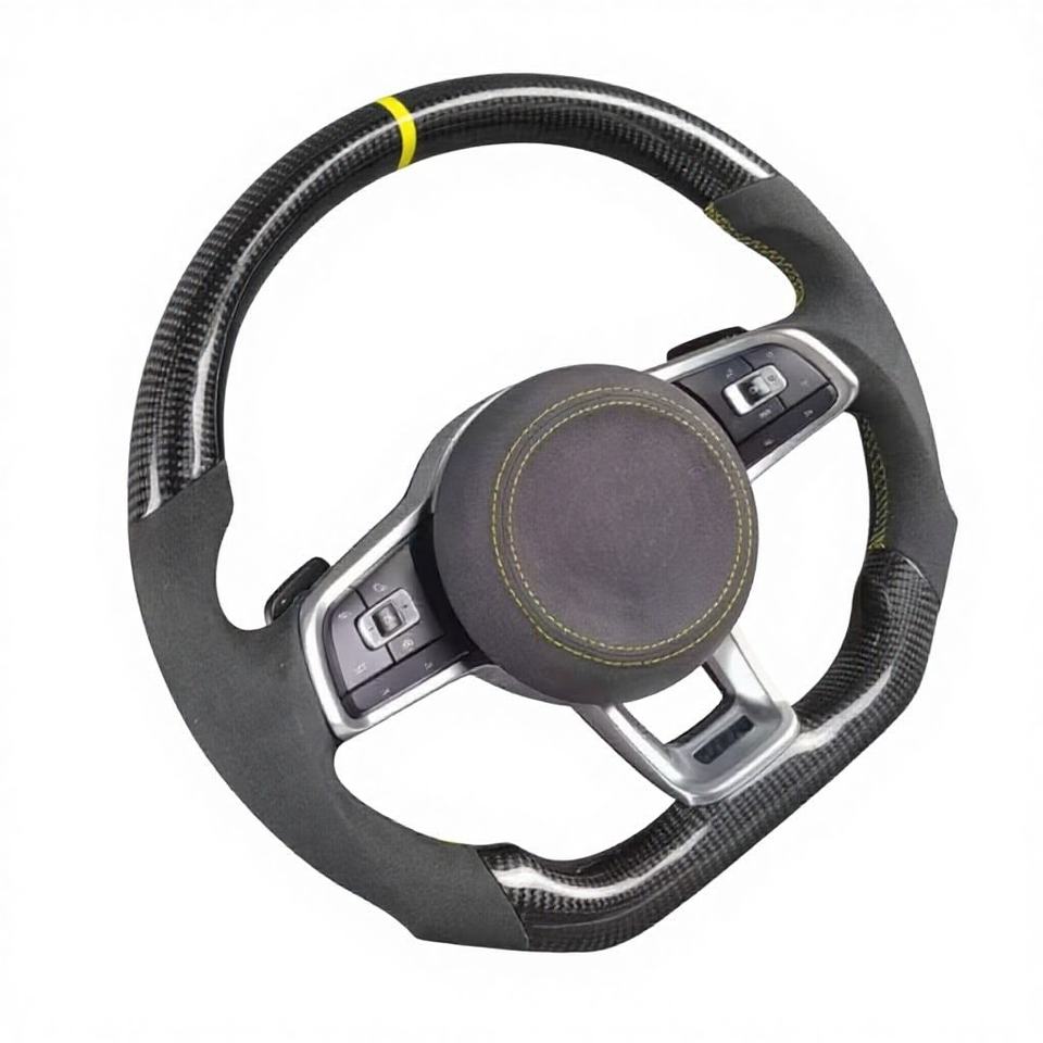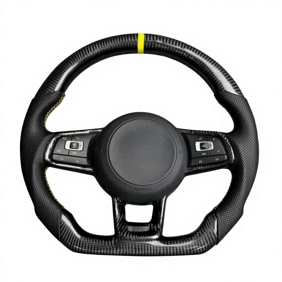 พวงมาลัยสปอร์ตหนังคาร์บอนไฟเบอร์แบบเจาะรูสำหรับ Volkswagen GTI Jetta Passat กอล์ฟ7คัน