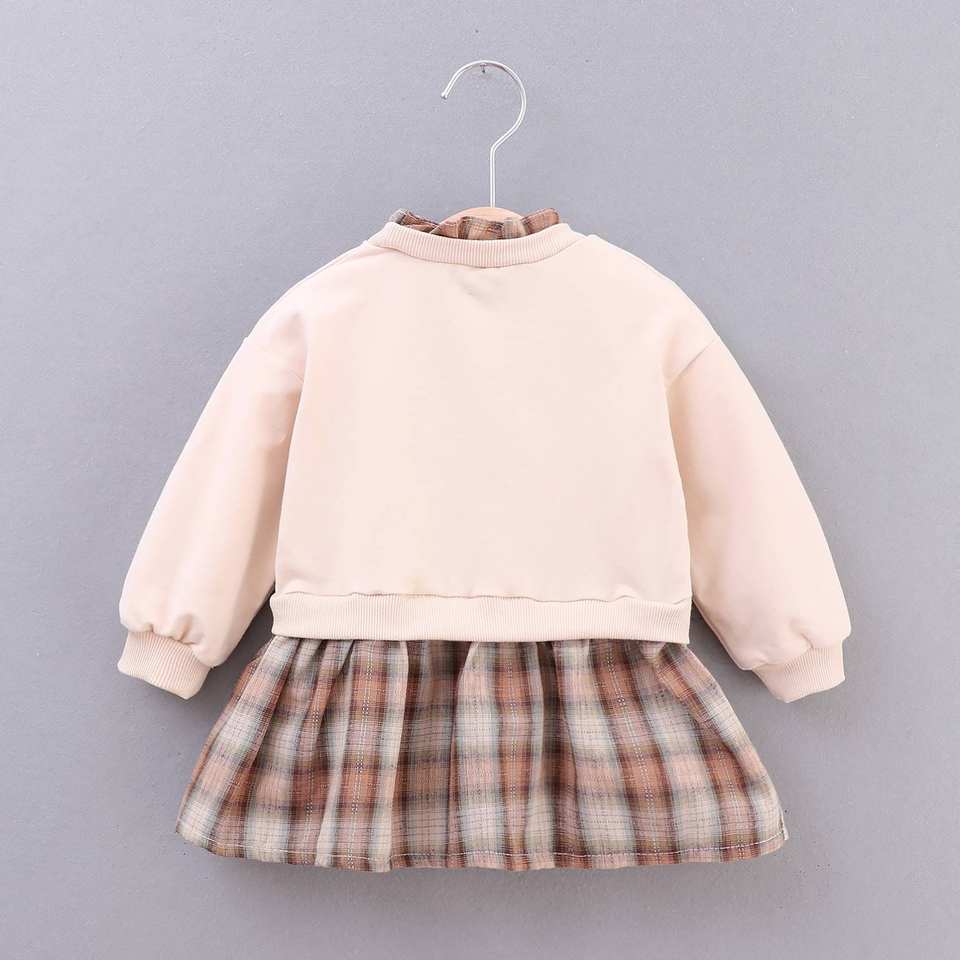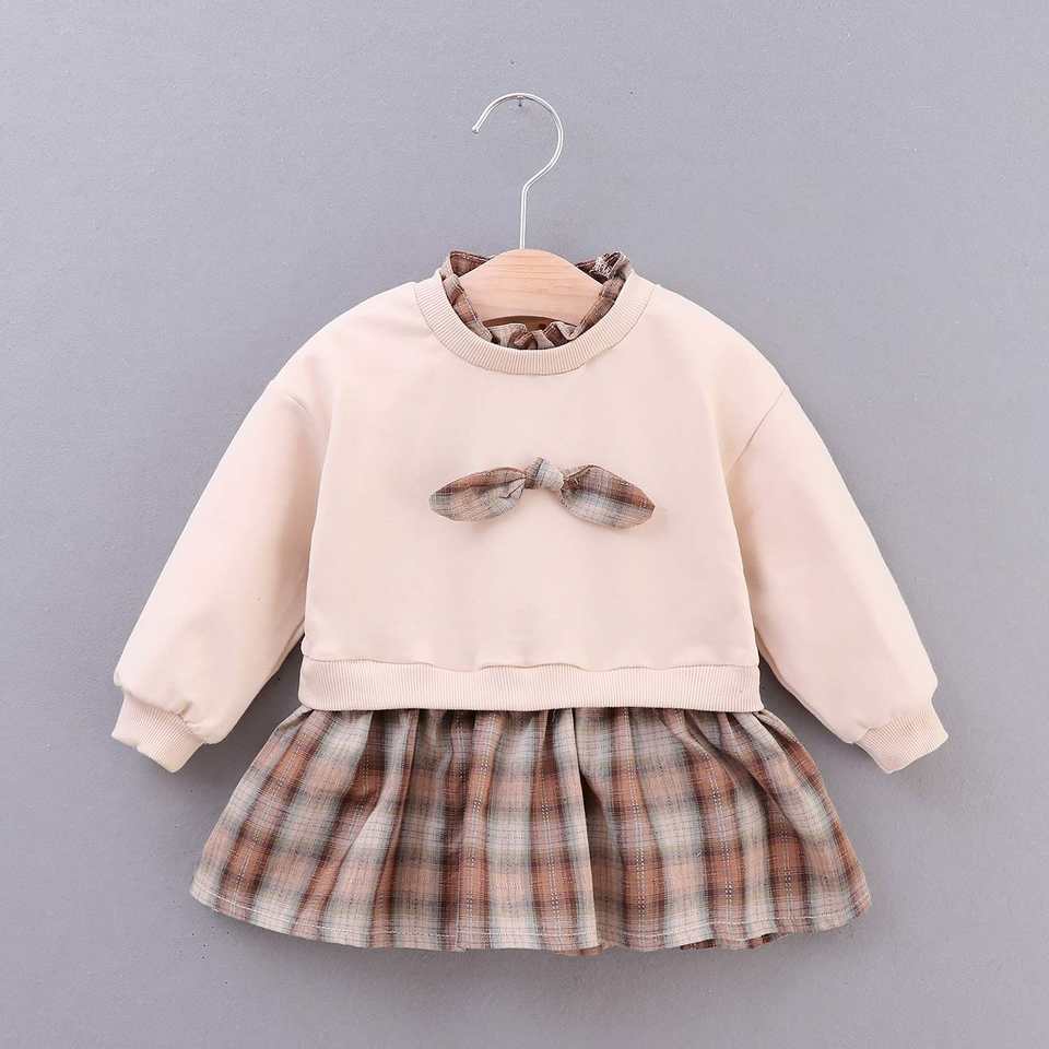 ชื่อ:เสื้อฮู้ดและเสื้อผ้าตกแต่งโบว์สีสั่งทำพิเศษ ชุดเดรสลายตารางสำหรับเด็กผู้หญิง
