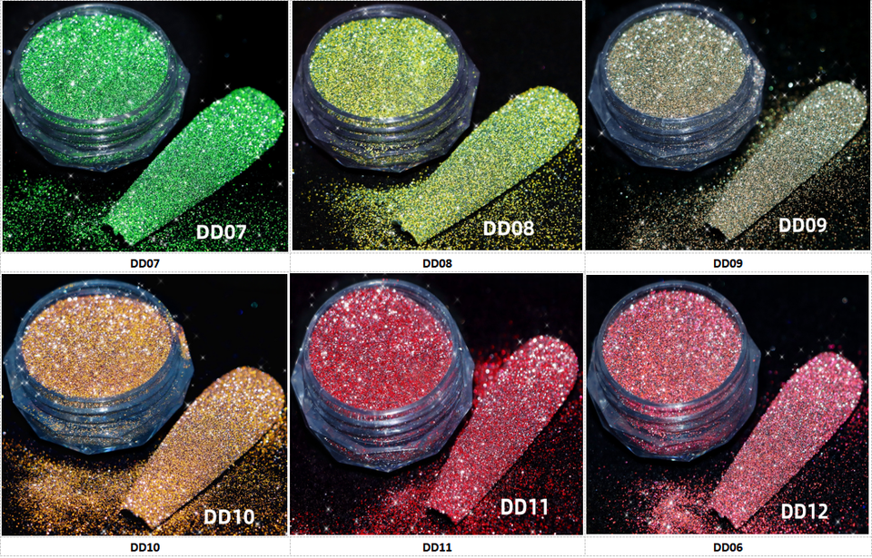 ผงเล็บไทเทเนียมสะท้อนแสงแบบใหม่ 12 สี สำหรับตกแต่งเล็บ ให้ความเงางามระยิบระยับ