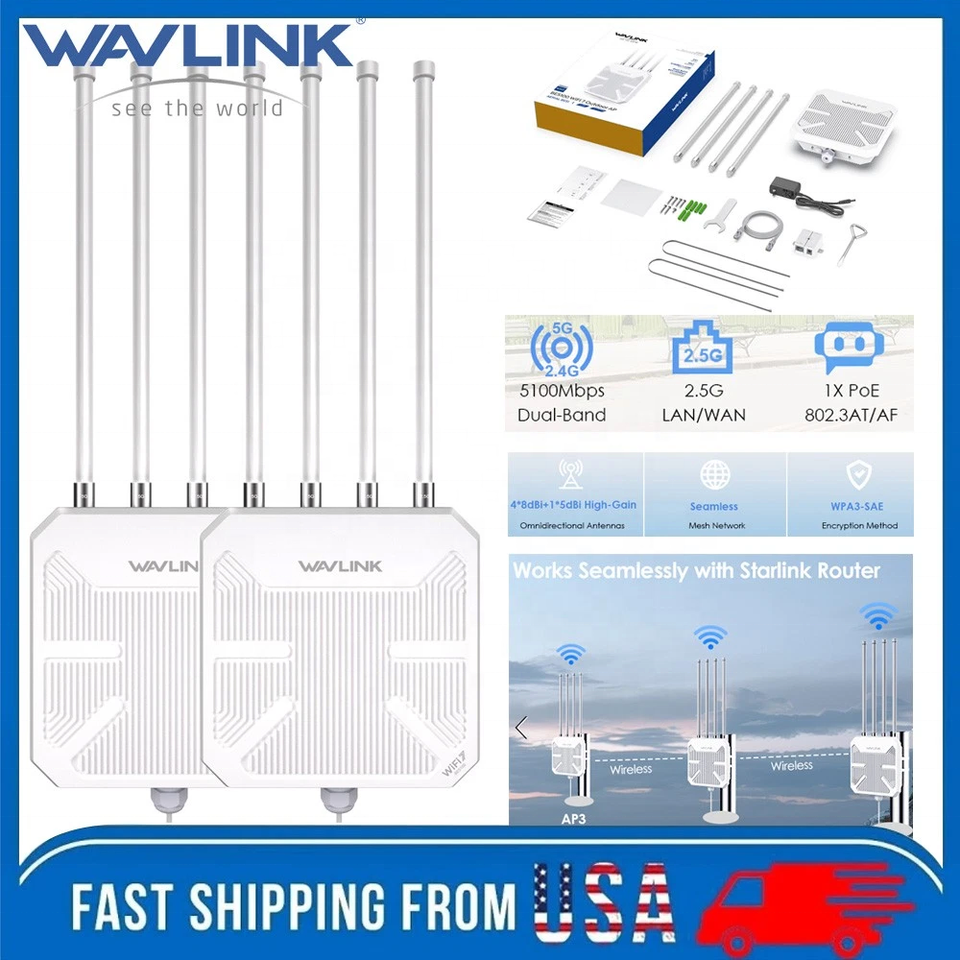 อุปกรณ์กระจายสัญญาณไวไฟระยะไกล WL-WN573HBE2 รุ่นใหม่ล่าสุด ระยะ 1 กม. ระบบ Mesh กันน้ำ สำหรับภายนอกอาคาร รุ่น Wavlink BE5100 WiFi 7