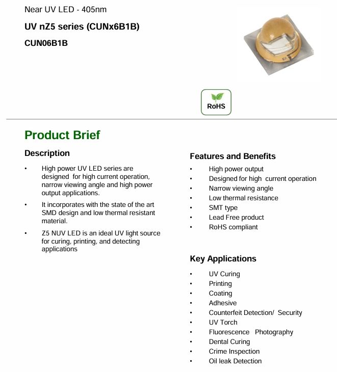 อุณหภูมิสี:365-420nm