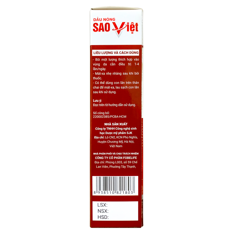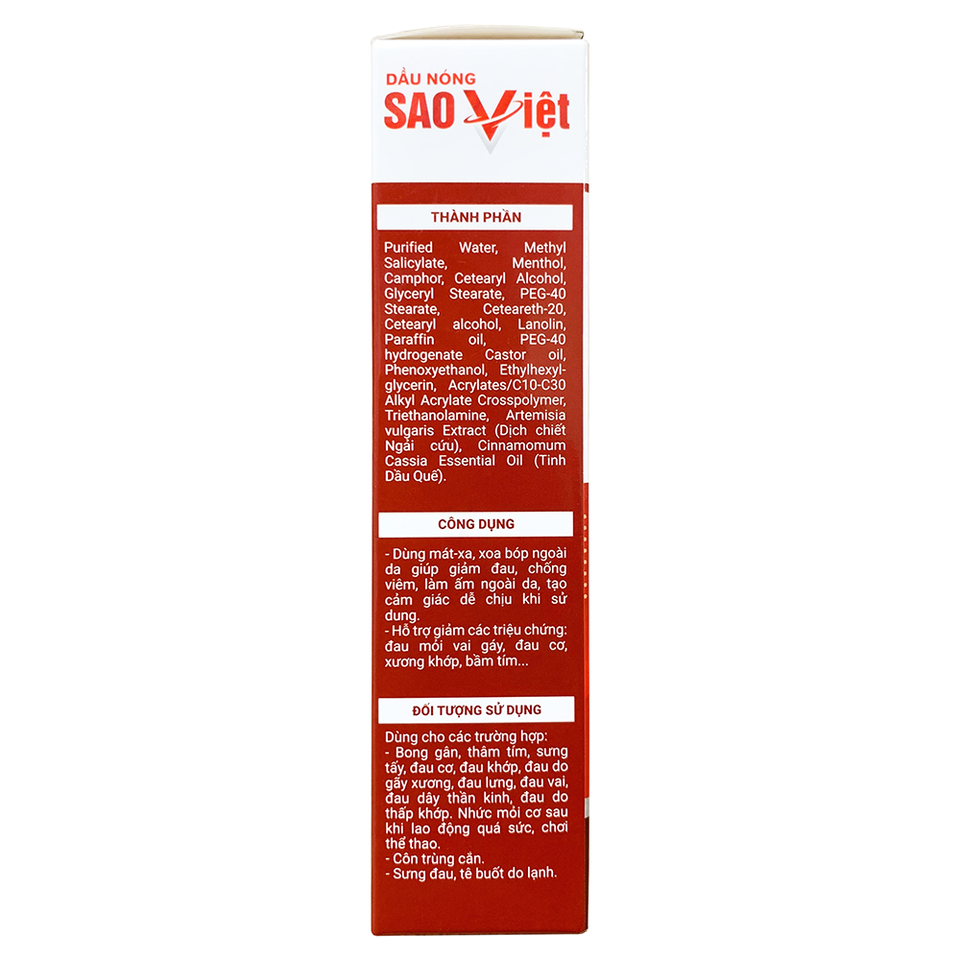 น้ำมันร้อนบรรเทาอาการปวดกล้ามเนื้อเร็วทันใจ น้ำมันหอมระเหยผสมสมุนไพร 60 มล. ผลิตในเวียดนาม SAO VIET สำหรับทุกสภาพผิว