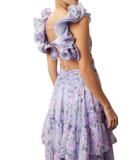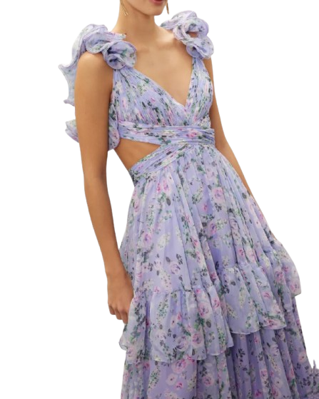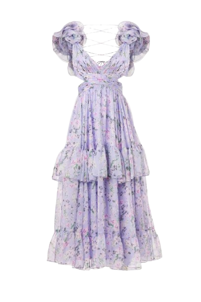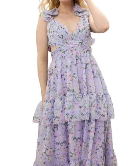 เดรสลายดอกลาเวนเดอร์พรีเมี่ยมสำหรับปาร์ตี้ชายหาดและชุดลำลอง