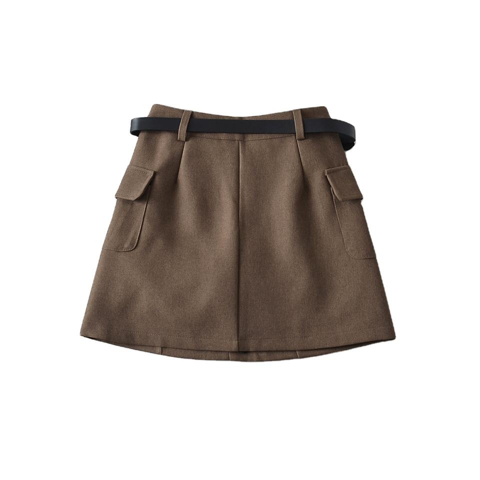 กางเกงขาสั้นทรงคาร์โก้เอวสูงแบบสองด้านของผู้หญิงพร้อมกระเป๋ามีฝาปิดตกแต่งกระดุมเข็มขัดผ้าแบบสั่งทำกางเกงขาสั้นสีเรียบ