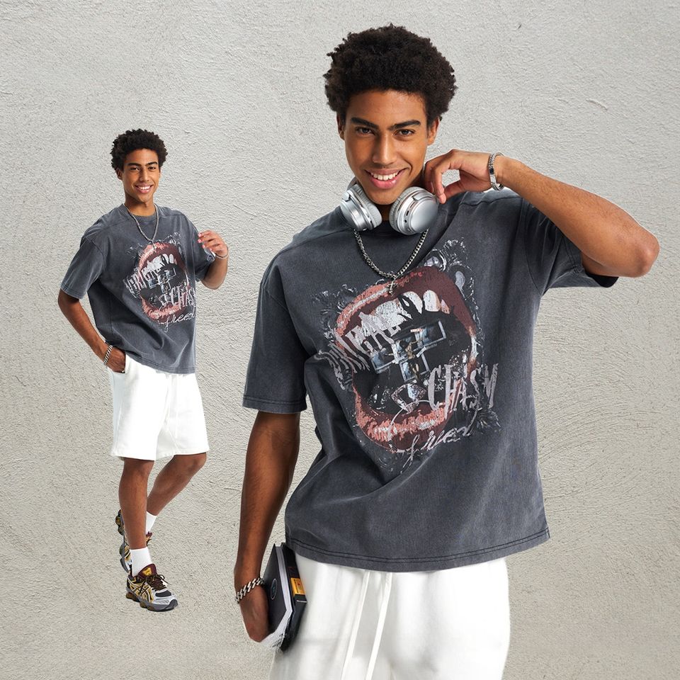 เสื้อยืดผู้ชายแขนสั้นผ้าฝ้าย100% พิมพ์ลายขี้ผึ้งไม่เหมือนใคร