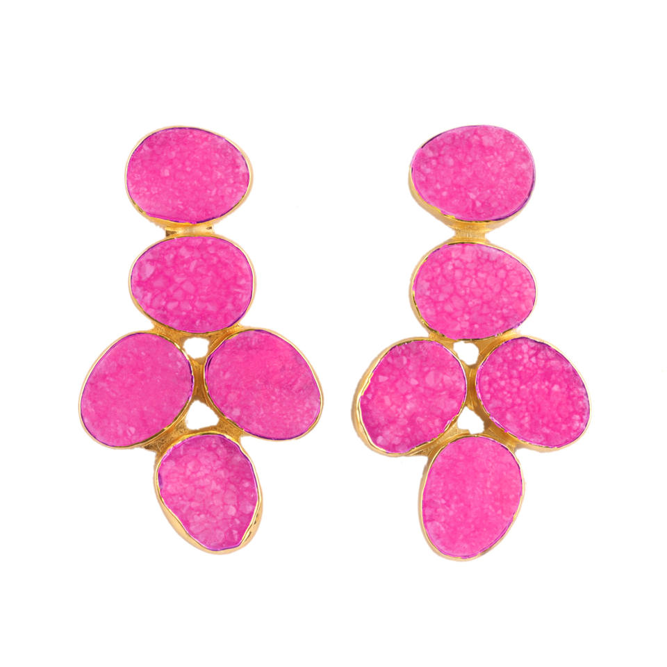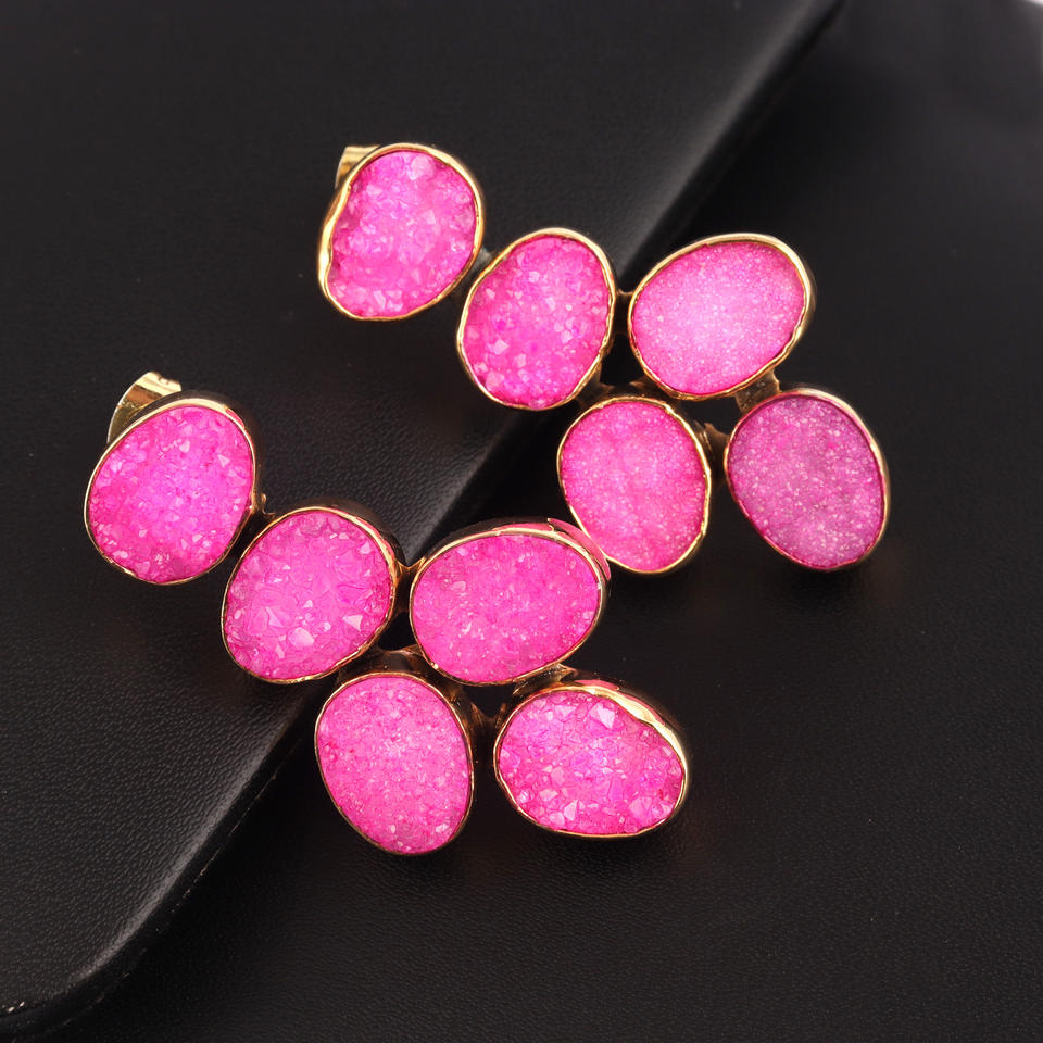 ต่างหูห้อยชุบทอง18K สีชมพูแวววาวตามธรรมชาติเครื่องประดับทองเหลืองแบบยาวประดับด้วยเม็ดน้ำตาลหลายสีชมพู