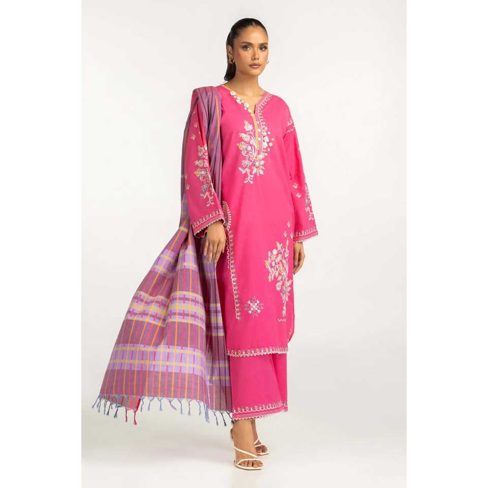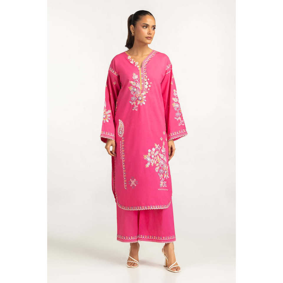Hot Pink Bohemian Cambric Embroidered Co-Ord Set for Women XXS/XS 2-Piece Outfit Above Knee Length for Spring/Summer
