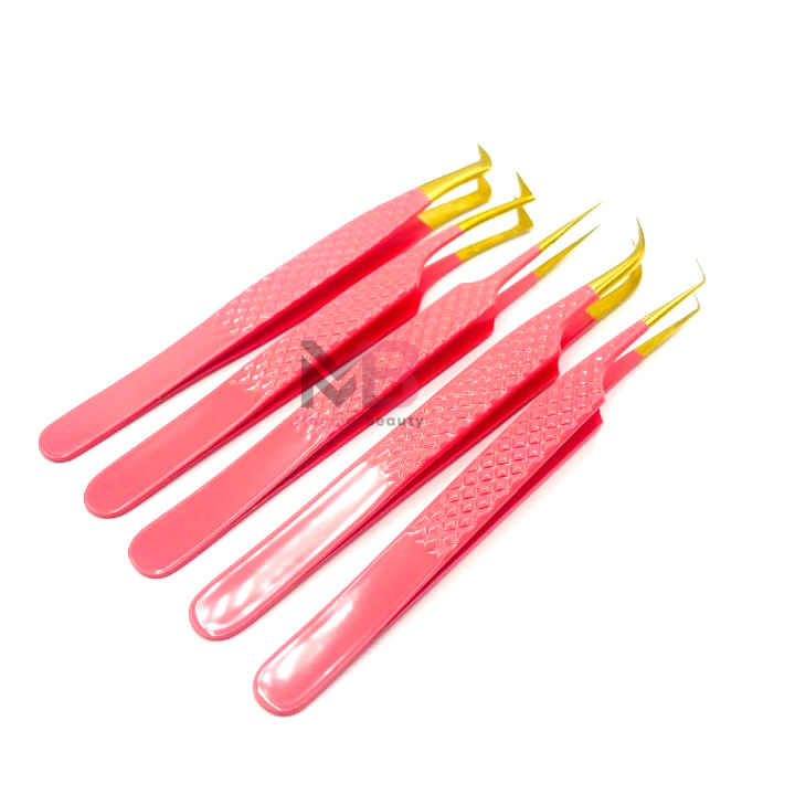 แหนบปลายต่อขนตากันลื่นกันแม่เหล็กปลายเพชรสีชมพูสุดฮอตสแตนเลสพร้อมชื่อแบรนด์ที่กำหนดเอง