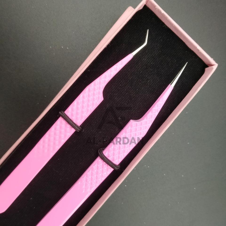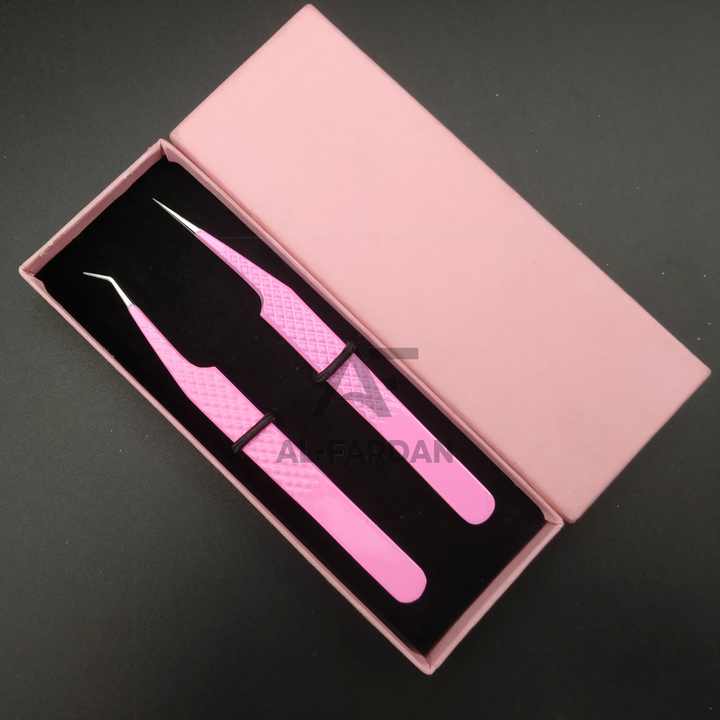 ที่หนีบขนตาปลอมสีชมพูยอดนิยมแหนบต่อขนตาปลอมแบบยั่งยืนสแตนเลสกล่องการ์ดปลายแหลม