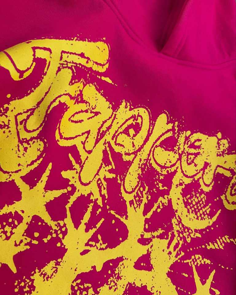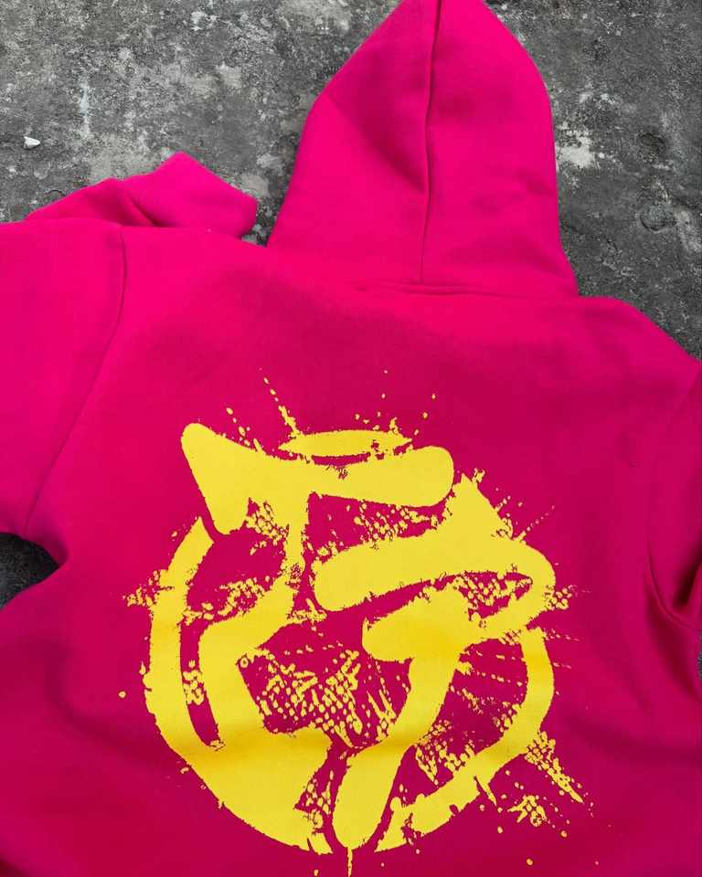 เสื้อฮู้ดผ้าฟลีซสีชมพูสดใส พิมพ์ลายกราฟิกสไลม์สีเหลือง สไตล์สตรีทแวร์ทรงโอเวอร์ไซส์ ใส่ได้ทั้งชายและหญิง ทรงหลวม แฟชั่นฤดูหนาว